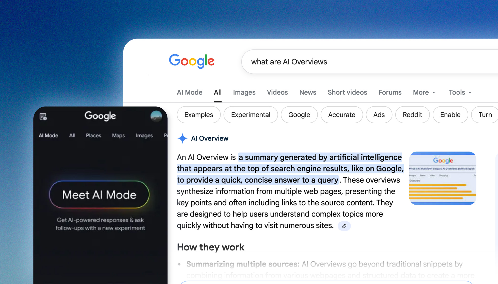 In parallel, Google is pushing AI Mode – a dialogue-oriented search mode based on Gemini. This chat tab combines the Google index with a chat interface and delivers answers in a conversational format. Internally, Google is already setting the course for developing AI Mode into a standard search method in the long term.