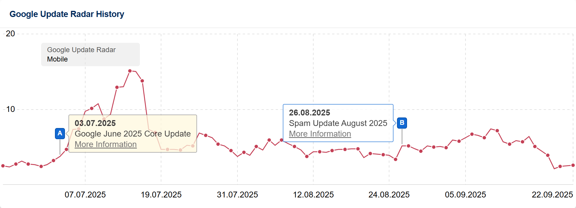 - For detailed information and data on all previous Google updates, see the SISTRIX update tracking page