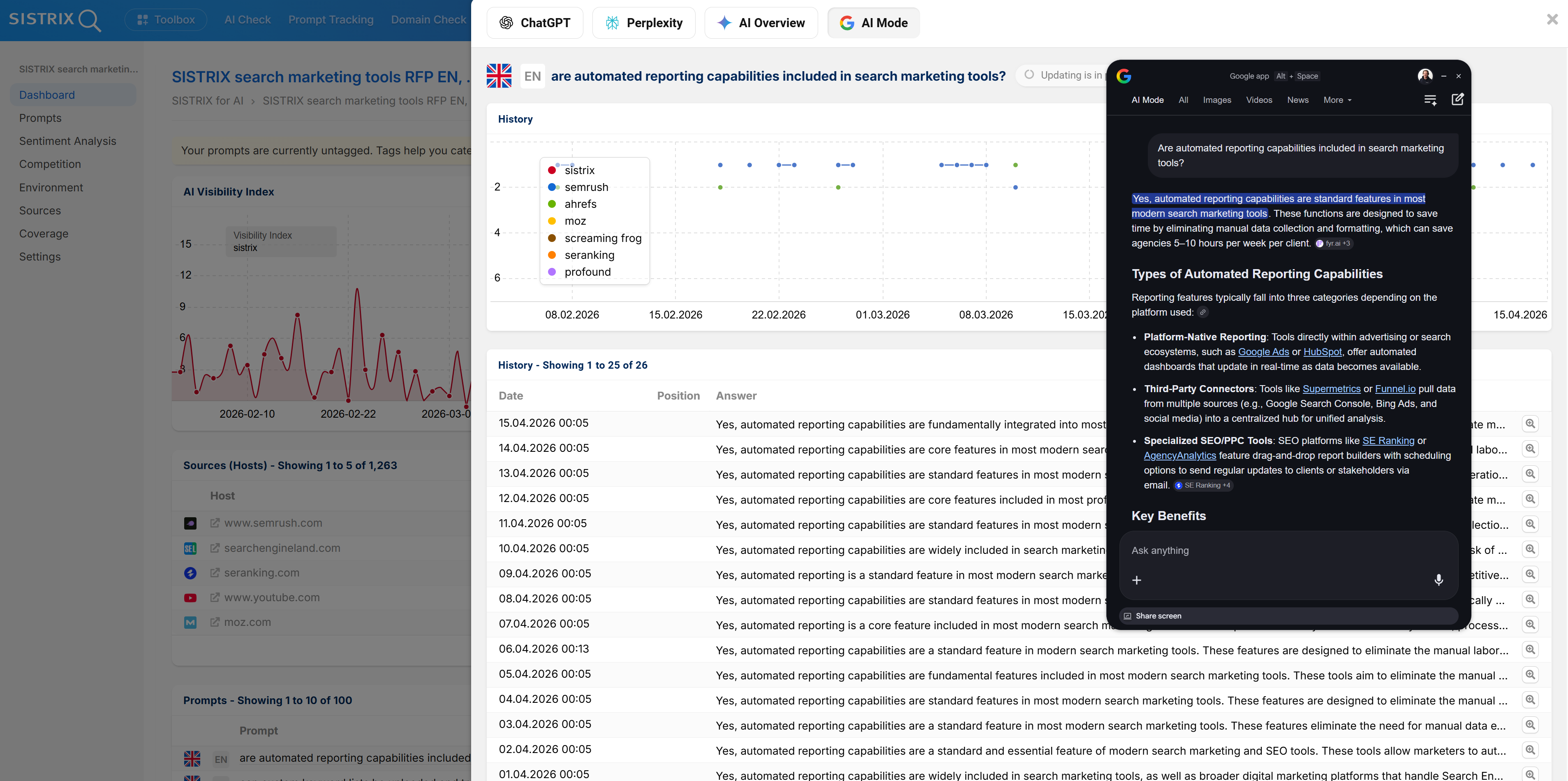 SISTRIX for Chatbot data already tracks millions of search terms across multiple AI search tools and AI Mode is one of the sources.