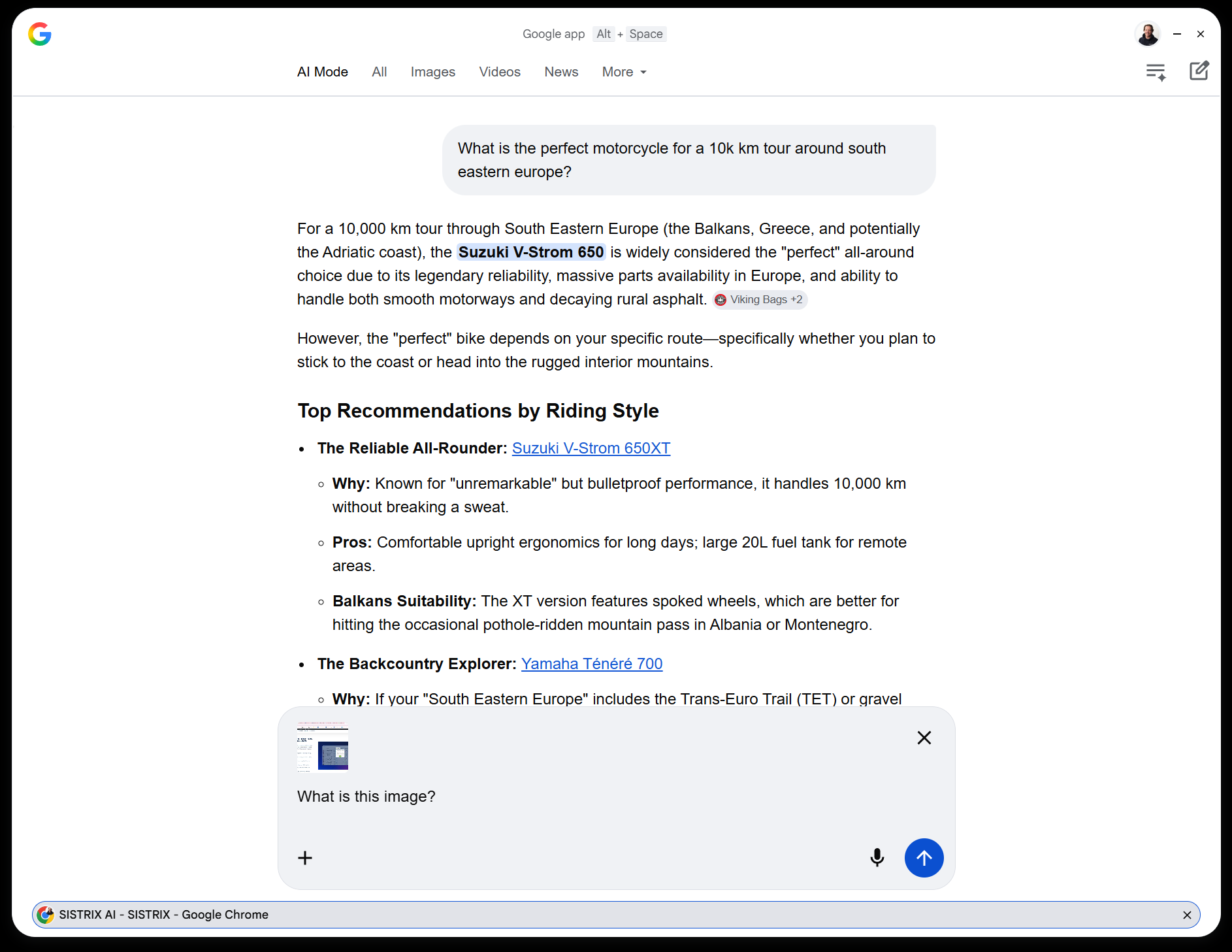 The app separates AI Mode search from the browser completely. It removes ad clutter, it’s clean. It also includes Google Lens and pushes the idea of image search via screen / app sharing. Voice search is integrated.