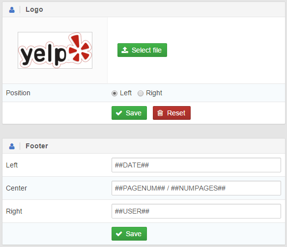 You can also configure a personal footer for your reports, which will be shown on all pages.